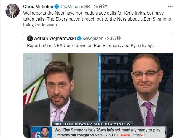 76人想用西蒙斯换来全明星球员,篮网也在接听关于欧文交易的咨询电话,但截止到目前,76人还没有给篮网打过电话,这确实挺有趣的;究竟欧文和西蒙斯两人的闹剧将会如何结束,我们只能拭目以待了。