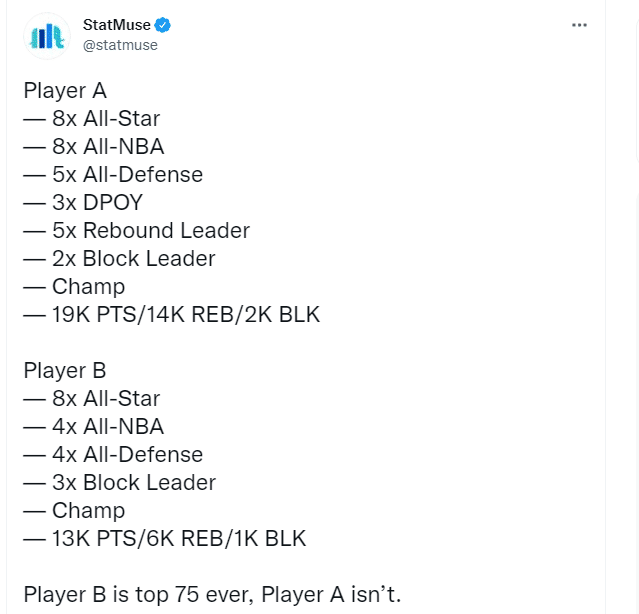 首先,StatMuse对比了浓眉和霍华德的成就。