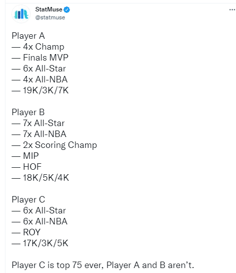 其次,StatMuse还对比了帕克、麦蒂和利拉德的成就。