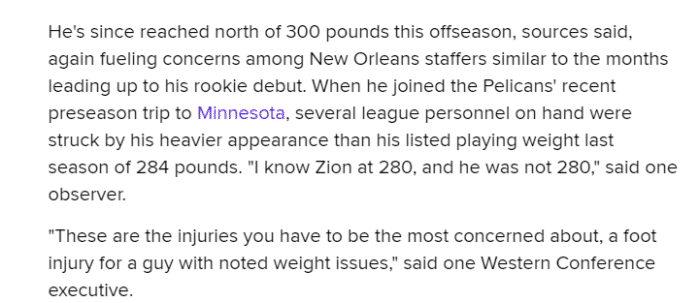 曝锡安又胖了!体重超300磅比上赛季更重,伤病使其生涯蒙上阴影