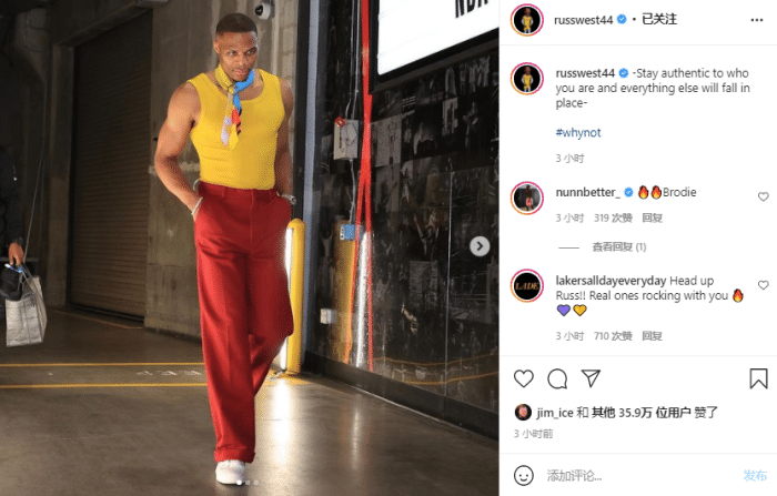 不久前威少更新动态,晒出揭幕战入场照并且配文回应质疑声:保持真实的自己,其他一切都会到位。湖人新援纳恩在评论区留言支持威少。