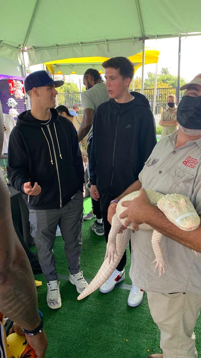 湖人野餐活动曝光!浓眉戴帽咧嘴大笑,霍华德带蟒蛇与球迷合影