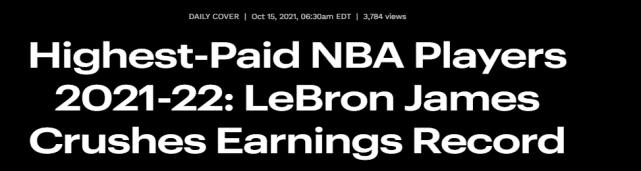 詹姆斯的场内收入是4120万美元,场外收入是7000万美元。在这份名单上,除了詹姆斯,库里、杜兰特和字母哥等人也都可以从代言球鞋品牌上获得巨额收入。