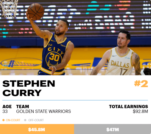 詹姆斯场外收入的一大来源,还在于他的Springhill公司。这家媒体公司目前的估值是7.25亿美元。库里和杜兰特在投资领域上也获得了不小的成功。库里场内收入4580万美元,场外收入4700万美元。杜兰特场内收入4090万美元,场外收入4700万美元。