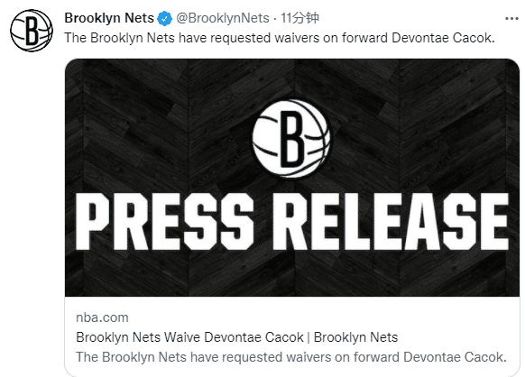 裁员之后,篮网宣布把后卫大卫-杜克的训练营合同转为双向合同,22岁杜克是今年落选秀,季前赛,杜克为篮网出战3场,场均上场16.6分钟得到4.3分、4.0个篮板、1.3次助攻和1.0次抢断,三分命中率50%;赶上篮网末班车,并且挤掉湖人旧将卡考克。