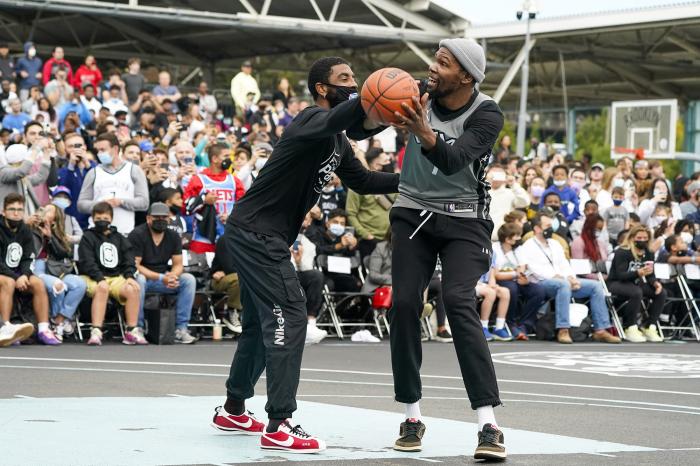 篮网全队户外合影曝光!哈登臃肿又胖了,杜兰特拥抱欧文喜笑颜开