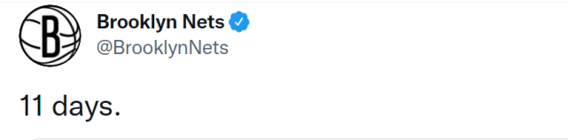 篮网官方也在今天进行赛季倒计时:11天,配上了欧文身穿11号球衣的照片。此前的球票销售海报上,欧文的位置被布朗替代,如今他再次出现在官方的动态中,也算是一个积极的信号。