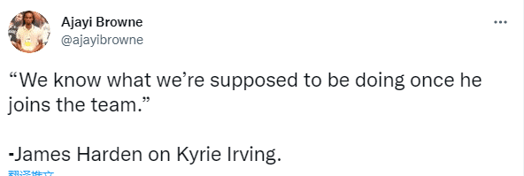 哈登也谈到欧文,他表示:我们都知道一旦欧文加入球队,我们能做什么事;今日一战,哈登上场24分钟9投3中拿到8分4篮板4助攻,外线三分6投1中手感糟糕,对于此战对阵雄鹿,哈登表示有些怪怪的;不过哈登赛后更新推特,发文写道:和这些家伙一起回到巴克利中心的感觉真好,加油布鲁克林。