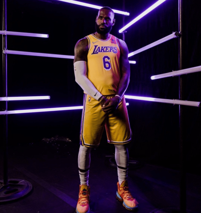很快詹姆斯就在社交媒体上晒出了自己的定妆照,6号詹皇也正式完成亮相,詹姆斯配文:“来自阿克伦的孩子 湖人秀 时辰已到”
