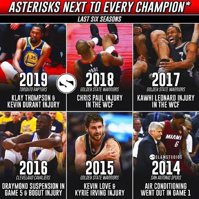 哪支队因伤没夺冠最可惜?美媒给6个选项:18年保罗,老詹杜兰特上榜!