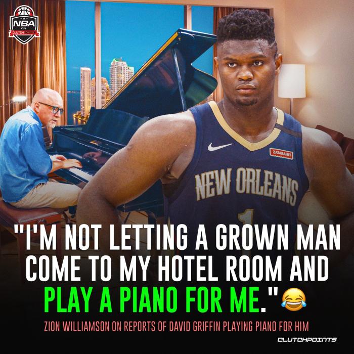 此前曾有美媒爆料,鹈鹕总经理格里芬为了和锡安建立关系,曾主动要求为锡安弹钢琴;对此锡安本人辟谣,他表示:得了吧,我不会让一个成年人到我的酒店房间为我弹钢琴的。