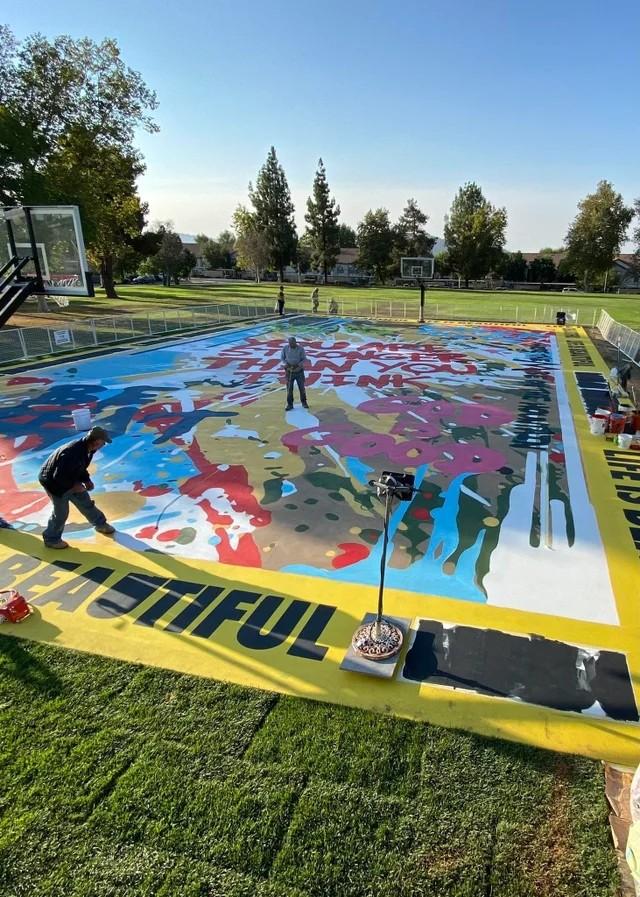 这个球场是小卡和他的品牌商一起捐资兴建,并以他的名字来命名。之所以选在这里,是因为小卡5岁时搬到莫雷诺谷,这里被他视为家乡,他的高中也在这里。从现场曝光的照片来看,小卡捐建的球场色彩绚丽,看上去很酷。