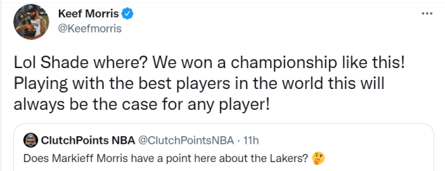 美媒clutchpoints转发了大莫的言论,配图上有这么一句话:“马基夫-莫里斯似乎在暗讽湖人。”