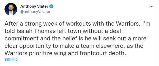 同样为勇士试训,布拉德利已经拿到训练营入场券,而小托马斯又悲催了;据勇士跟队记者Anthony Slater报道,由于勇士倾向于补强锋线和前场的深度,小托马斯没有得到签约承诺,之后小托马斯主动离开。
