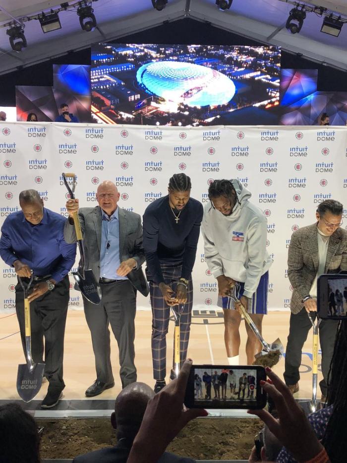在新球馆奠基仪式上,鲍尔默豪言要在搬离洛杉矶之前先拿到几个总冠军,并且相信球队有能力去争夺总冠军;鲍尔默还表示新球馆里会有1500个坐便器,还有640个浴室和350个小便器。