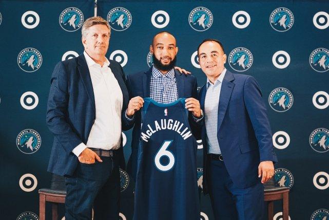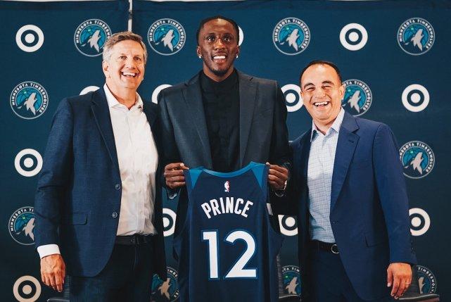 除了贝弗利,森林狼的12号普林斯,6号麦克劳林和8号范德比尔特,也都出现在今天的新闻发布会上,和媒体见面并和球队教练、高层合影。