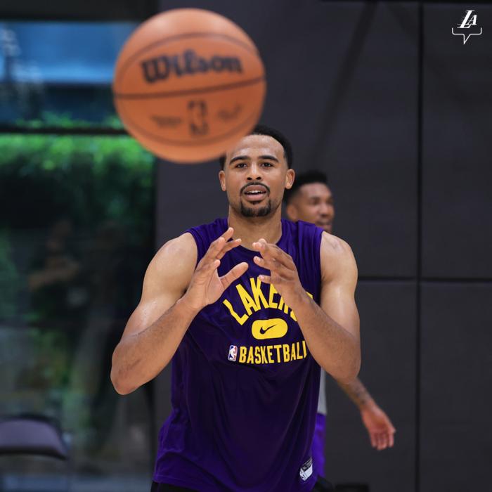 36岁詹姆斯的最新训练视频曝光,身穿湖人紫金配色的短裤和黑色小背心,在湖人训练馆苦练三分球,早已练得大汗淋漓;霍顿-塔克、纳恩、蒙克和老詹一起训练,今年休赛期,20岁塔克和湖人达成续约合同,湖人官方晒出他的训练照,明显瘦了不少。