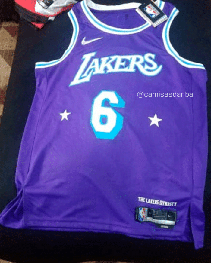 美媒曝光湖人纪念NBA75周年赛季的经典版球衣实物照,这件詹姆斯湖人6号球衣以紫色为主,詹姆斯将在2021-22赛季纪念NBA成立75周年的比赛中使用;新赛季詹姆斯改穿湖人6号球衣,继续带队冲击总冠军。