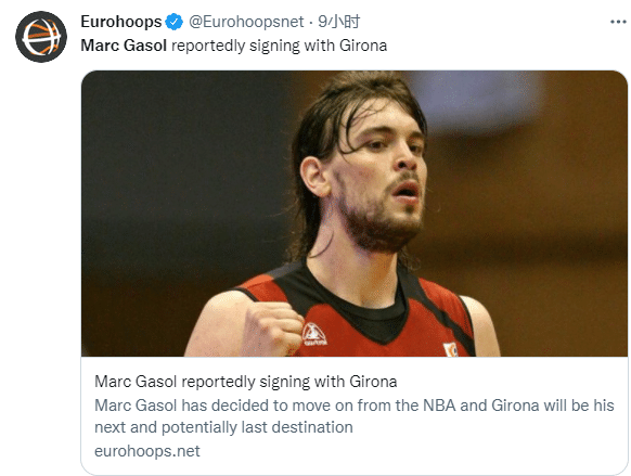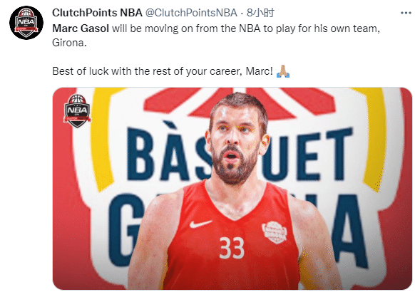 来源:24直播网09-13 11:1524直播网9月13日讯 ,36岁小加索尔将会离开NBA并且重返西班牙联赛,据欧洲媒体EuroHoops的报道,马克-加索尔将会签约西班牙的赫罗纳篮球俱乐部,小加索尔将在自己的球队结束职业生涯。