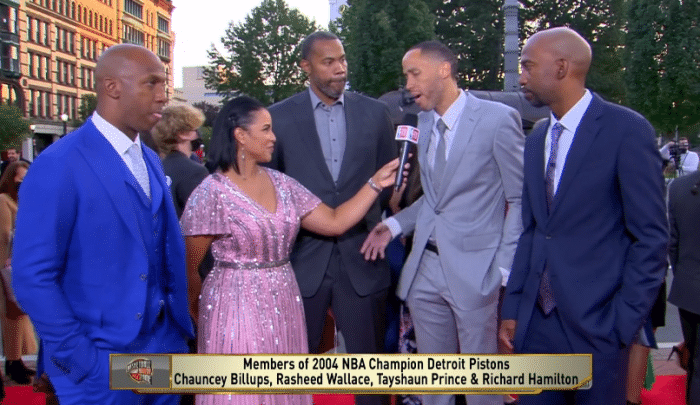 大本入选名人堂,活塞五虎中另外四人也来到现场,昌西-比卢普斯、拉希德-华莱士、普林斯和理查德-汉密尔顿,他们都盛赞本-华莱士并亲眼见证大本的荣誉时刻;活塞五虎曾在04年掀翻湖人F4豪阵从而夺得总冠军。