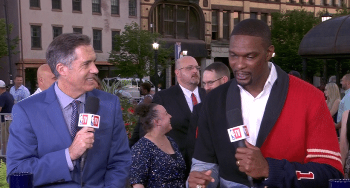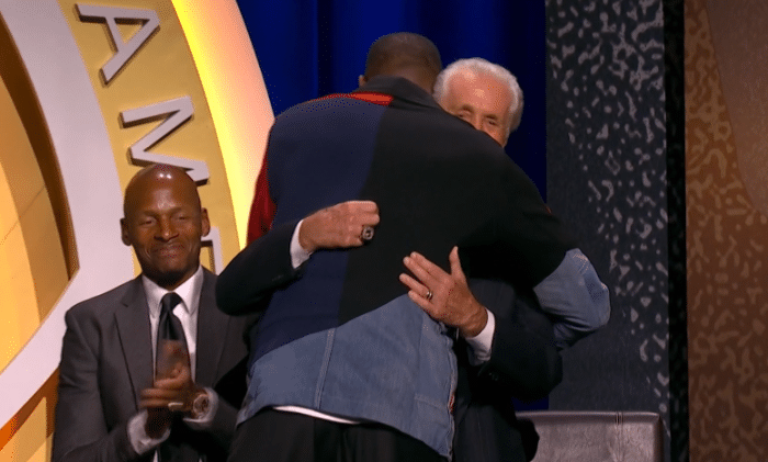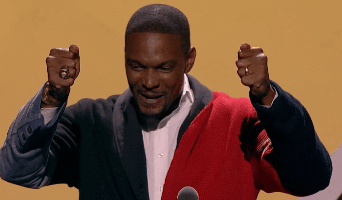波什正式入驻名人堂!压轴上台现场观众起立欢呼,詹皇现身咧嘴大笑