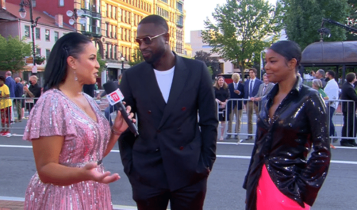 热火总裁帕特-莱利和热火主帅斯波尔斯特拉来到现场,韦德携爱妻尤尼恩也来了,热火昔日三巨头重聚,他们合作4年夺得两座总冠军。