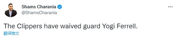来源:24直播网09-06 11:3624直播网9月06日讯 ,快船官方宣布裁人,据名记shams报道,快船已经裁掉球队后卫约吉-费雷尔,快船提前裁人腾出阵容名单,也许他们正在为下一步操作做准备;这就是NBA的残酷之处,拿着无保障合同,随时可能被裁掉,费雷尔5年换5队,继续流浪太难了。