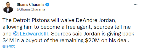 小乔丹和活塞达成买断!放弃400万将成自由球员,将签约湖人助詹皇冲冠