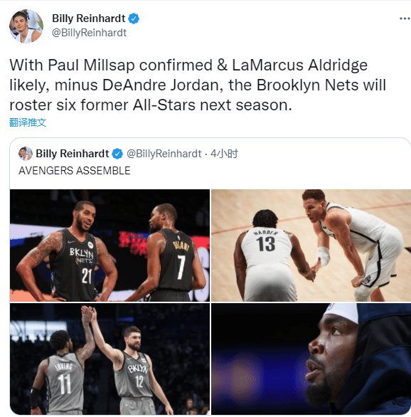 来源:24直播网09-03 16:0124直播网9月03日讯 随着米尔萨普同意加盟篮网和阿德获准重返赛场并且最可能重返篮网,篮网新赛季的15人大名单已经提前确定下来,随队记者感叹:史上最有天赋的阵容。