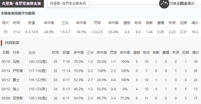 上赛季保罗场均16.4分4.4篮板8.9助攻1.44抢断,三分命中率39.5%,罚球命中率93.4%,仍保持高效率的表现。季后赛保罗场均19.2分3.5篮板8.6助攻,这些数据无不说明保罗的重要性,而且保罗的价值绝对不是数据可以体现的,这也是保罗能拿下4年1.2亿的原因,不过对于实现冠军梦这种事情,保罗确实在努力,刻苦训练以及晒名言激励自己,你必须想到一句话:永远不要低估一颗总冠军的心。