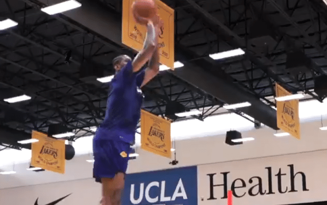 过去几天,美媒常常晒出安东尼的打球视频,但这是他第一次出现在湖人的训练馆里。安东尼咧嘴大笑,心情很不错,在湖人的总冠军旗帜下,他的招牌跳投美如画。就在训练馆的上空一侧,是珍妮-巴斯的办公室,总冠军奖杯排成一列。站在湖人训练馆里练球,抬头就能看到总冠军奖杯,对于球员来说,这无疑是最大的激励。