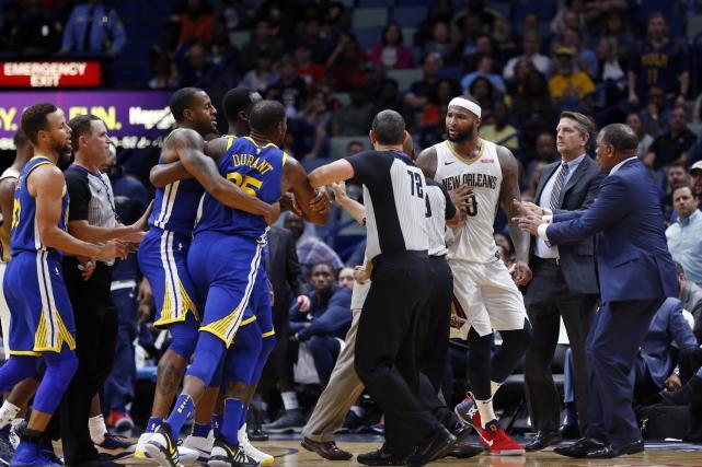 考辛斯还在鹈鹕打球时,曾经和当时效力勇士的杜兰特发生激烈冲突。赛后,考辛斯还试图冲向勇士更衣室去寻找杜兰特理论,被保安拦住。2018-19赛季,两人在勇士成为队友,遗憾的是他们最终没能拿到总冠军。受到伤病困扰的勇士在总决赛2-4不敌猛龙。杜兰特和考辛斯没能携手夺冠,但两人的过节就此化解,成为关系不错的朋友。