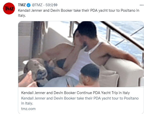 布克身穿白色小背心和灰色短裤,詹娜则是身穿黑色比基尼,凸显完美曲线和性感身材,这对情侣都斜躺在游艇的沙发上——布克搂着詹娜,两人当众接吻十分恩爱;布克和詹娜已经来到意大利一周了,从撒丁岛附近到卡普里,现在他们已经来都阿马尔菲海岸,一路乘坐豪华游艇尽享甜蜜假期。