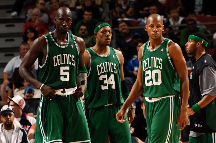 当年凯尔特人组成这三巨头虽然只拿到了一冠,但常年处在争冠行列当中,但似乎没多少人说他们抱团!个人认为原因有两个,其一,这三人当时的年龄都不小了,年龄大一些的雷阿伦已经32周岁了。其二则是因为这组三巨头组成是由交易促成的,绿军花了很大的筹码分别从森林狼和超音速交易来了加内特雷阿伦,并不是球员主动加盟的!
