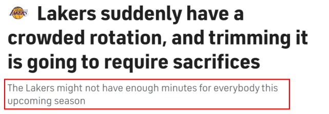 多出63.4分钟!湖人新阵容时间如何分配?美媒列两大关键问题