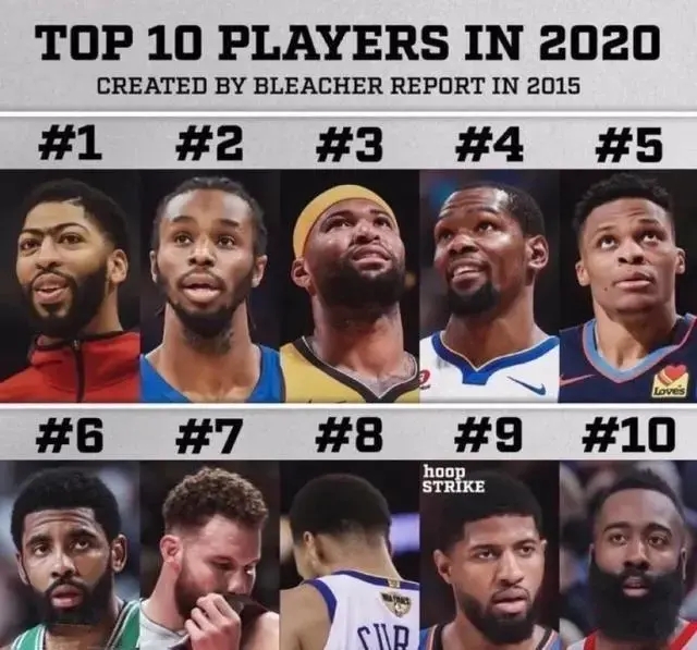 都错了?美媒晒2015年预测的2020前十球员:无老詹,维金斯考辛斯前三!