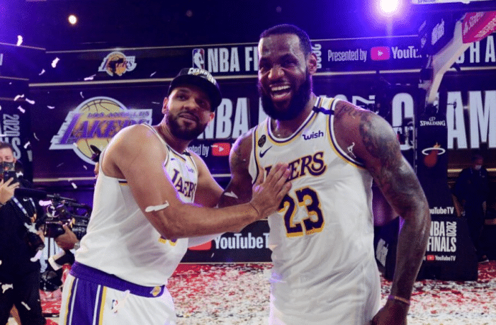 杜德利先是发推:伙计,多么棒的旅程!14年的生涯以在湖人夺得冠军做为收尾,在此感谢上帝对我的保佑,同时也感谢詹姆斯、浓眉、珍妮-巴斯和整个湖人团队,假如没有詹姆斯和浓眉,我就不会加入湖人,当然也不会赢得一枚总冠军戒指。