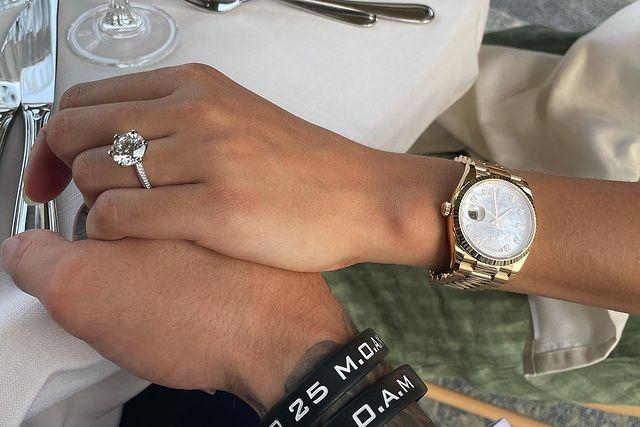 求婚成功之后,小里弗斯先是掏出钻戒并且为女友戴上,此时他的女友满脸笑容十分开心;然后他搂着并深情亲吻女友,紧接着便是享受甜蜜的二人世界,这钻戒确实有分量。