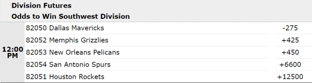 昔日的西南三强,只有独行侠还有不错的实力。他们是西南分区冠军赔率排名第一的球队,达到-275。东契奇有望打出更好的表现,率领独行侠提升战绩。灰熊(+425)和鹈鹕(+450)实力相近,分列第二和第三。曾经的西部劲旅马刺和火箭,都已经大不如前,马刺的分区冠军赔率只有+6600,火箭更是只有+12500,在这个分区垫底。