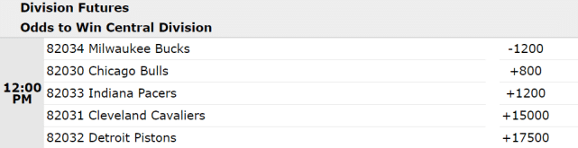 雄鹿所在的中部赛区,估计是分区冠军悬念最小的,毕竟,作为上赛季的总冠军,雄鹿实力要明显高于同区的四个对手。雄鹿的分区冠军赔率是-1200,优势明显。排名第二的是休赛期运作不错的公牛,赔率是+800。排名第三至第五的依次是步行者(+1200)、骑士(+15000)和活塞(+17500)。他们都难以对雄鹿构成威胁。