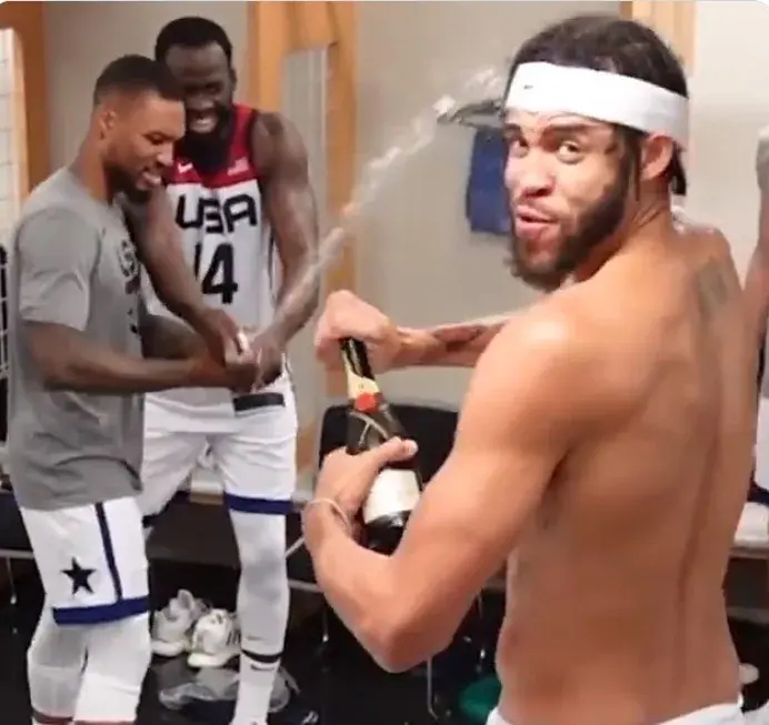 已过而立之年的表哥,做梦都想争夺总冠军,东京奥运会夺冠后,还得追梦格林手把手教开香槟,甚至对面的麦基都比他熟练,这画面实属心酸。