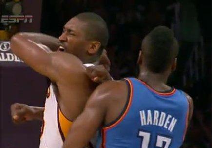 场上,阿泰斯特对本华莱士大动作的犯规,让大本火冒三丈,本华莱士一把将阿泰斯特推得连退几步,你还真别说,号称硬汉的阿泰斯特也是挺鸡贼的,看到对手不是哈登那样的球员,看到气势汹汹的本华莱士,阿泰并没有敢正面迎击。