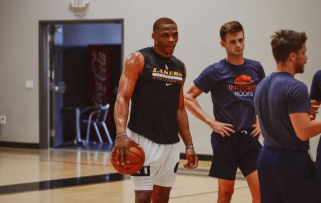 最近一段时间,威少在疯狂训练,他身穿湖人背心的最新训练照也曝光了。此前的采访中,威少豪言被认为年迈的湖人会打爆那些年轻小伙,湖人老板珍妮-巴斯也相信洛杉矶球迷会为威少感到疯狂。
