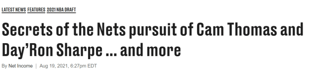 来源:24直播网08-20 11:1124直播网讯 拉斯维加斯夏季联赛上,篮网的两位首轮秀表现出色。27号秀卡姆-托马斯成为MVP和得分王,29号秀夏普在前场篮板方面相当突出。北京时间8月20日,美媒揭秘篮网的选秀内幕,看看他们是如何选中这两位首轮秀的。
