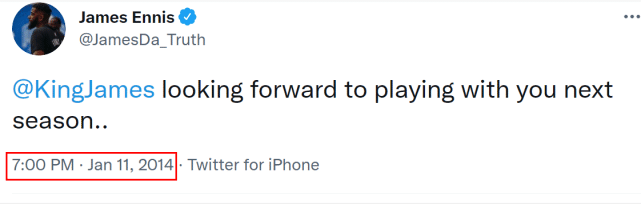 如果恩尼斯能够成功签约湖人,他就能和詹姆斯并肩作战,有趣的是球迷扒出了恩尼斯7年前的社媒,当时他就曾表态期待和詹姆斯成为队友。