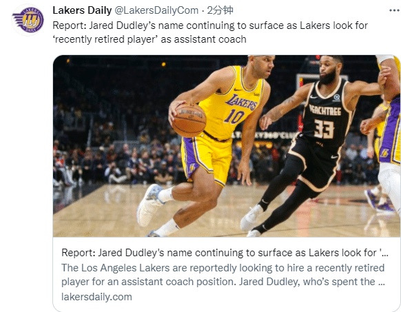 另外要说的是,湖人核心阵容几乎已经确定,而教练组也缺人,因为基德和霍林斯都离队了,据名记报道,杜德利可能成为沃格尔的助教;此前海耶斯报道,湖人不可能续约杜德利,而现在他可能以助教的身份继续留在湖人。