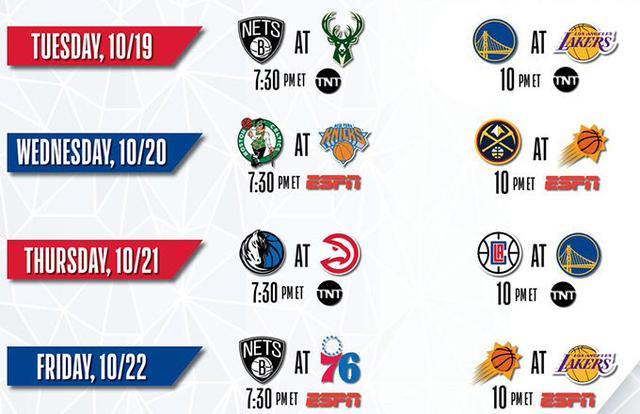 10月20日 7:30 篮网vs雄鹿 10:00 勇士vs湖人
