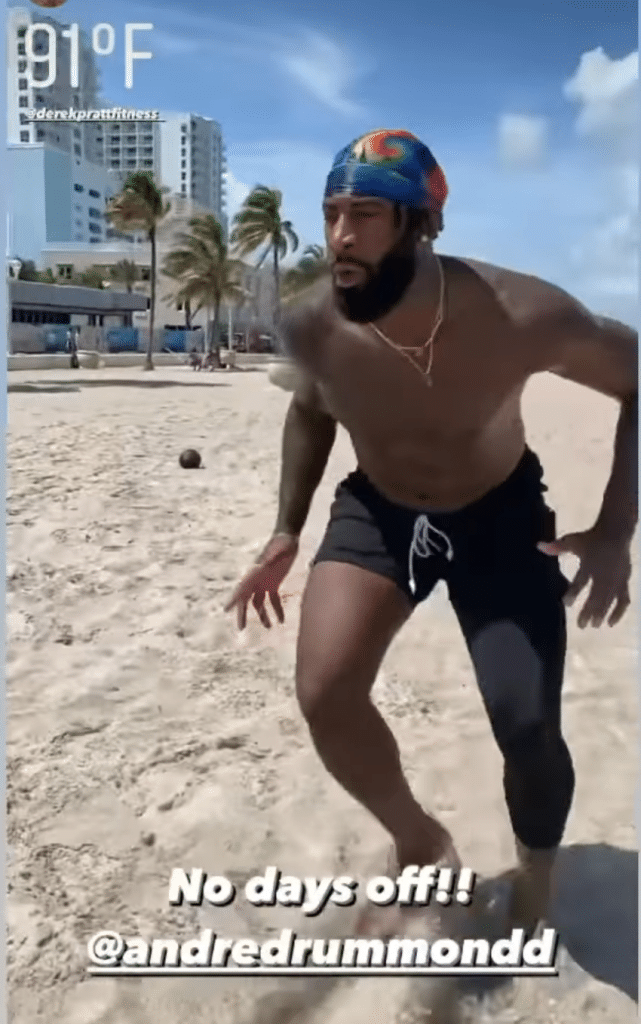 别忘了,还有加盟76人的德拉蒙德。他更新社媒,晒出了自己在沙滩上练习脚步的动态。气温是华氏91度(大约33摄氏度)下,他在沙滩上训练,配文是“一天不休”。签了一年底薪去打恩比德的替补,庄神还有机会爆发吗?