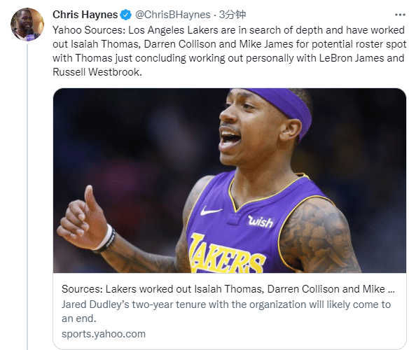 湖人引援目标曝光!试训小托马斯等3人,名记:他和詹皇威少一起训练