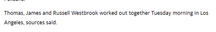 周三上午,小托马斯在洛杉矶和詹姆斯、威少一起训练。